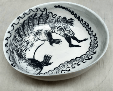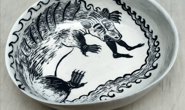 Découvrez mes pièces illustrées, réalisées avec la technique du sgraffito, alliant tradition et créativité pour des œuvres uniques.