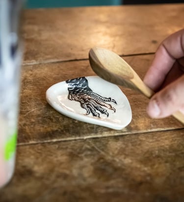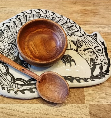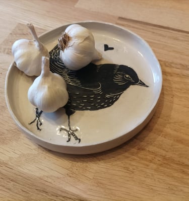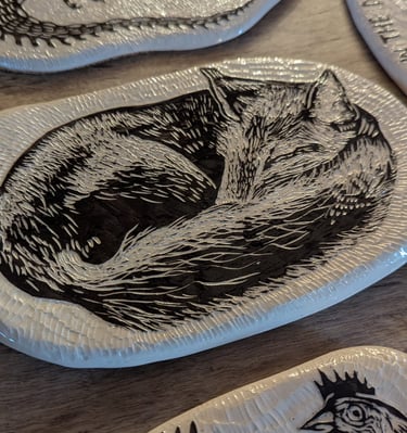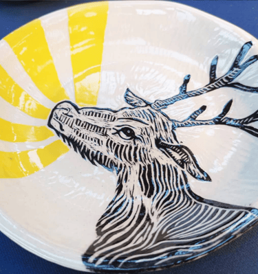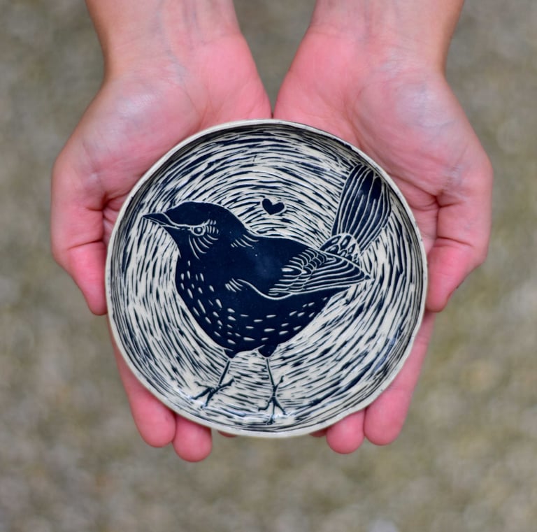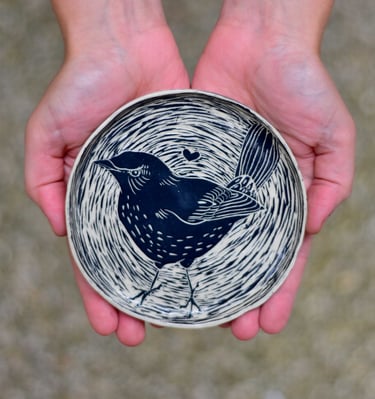 Mes pièces en Sgraffito sont réalisée en grès. Elles sont donc particulièrement solides et passent au lave vaisselle, la qualité, Made in Breizh !