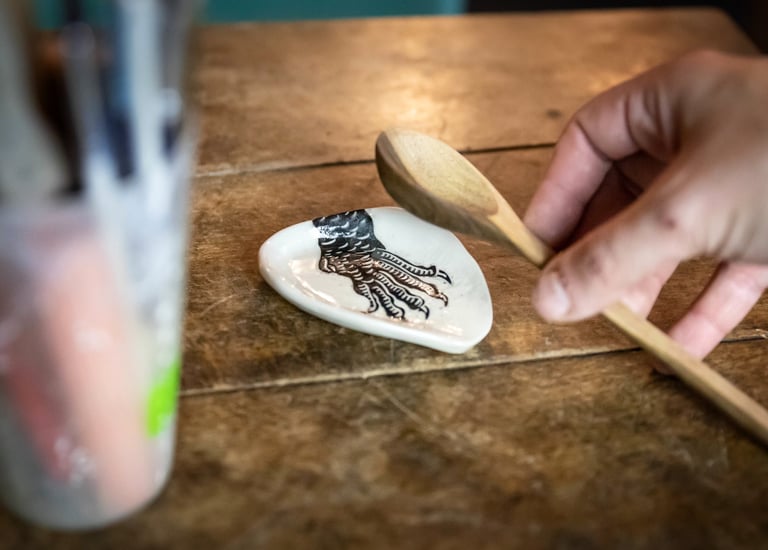Découvrez mes créations uniques en porcelaine, alliant tradition et modernité, réalisées avec la technique du sgraffito pour un rendu exceptionnel.