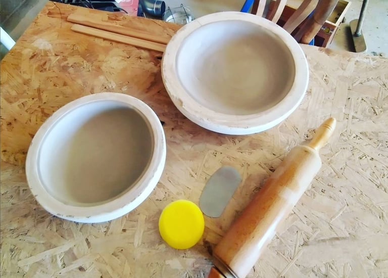La pièce est façonnée à la main avec un grès blanc. Elle sèche ensuite pendant 3 à 5 jours.