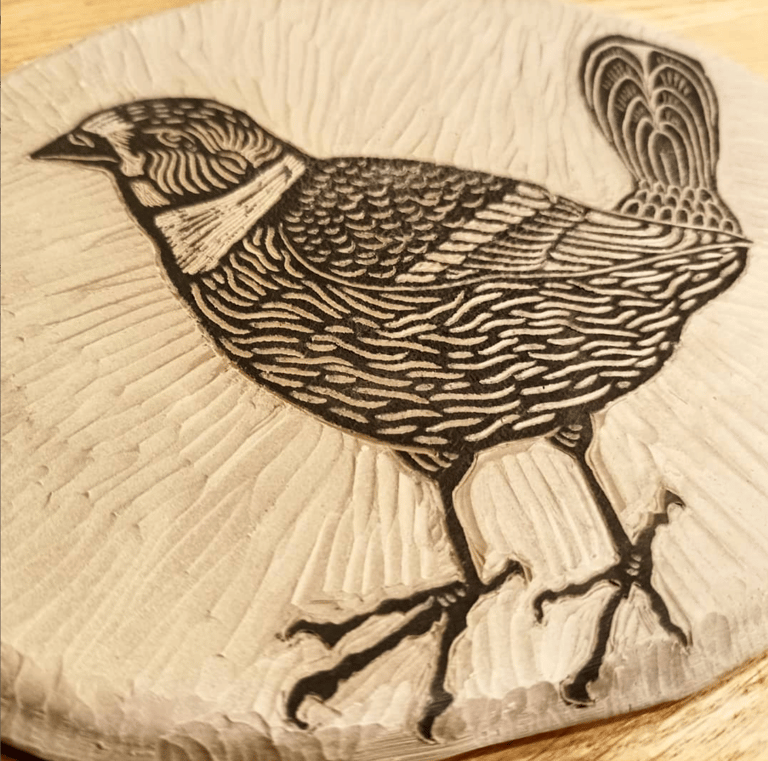 Quelques heures plus tard, la pièce est grattée avec une petite gouge pour former le dessin.